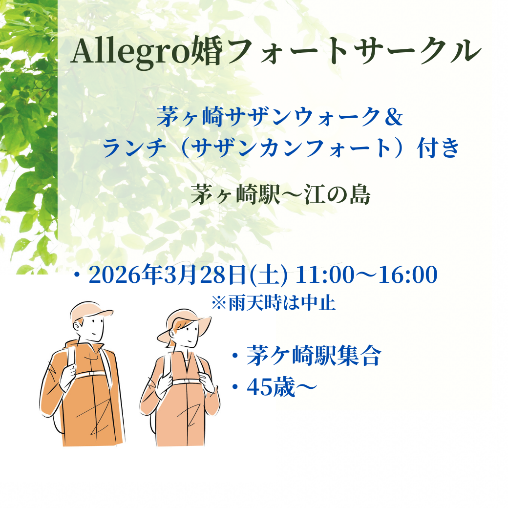 『Allegro婚フォートサークル』は、45歳以上の大人世代を対象にした、有志による交流サークル(単発参加可)です。